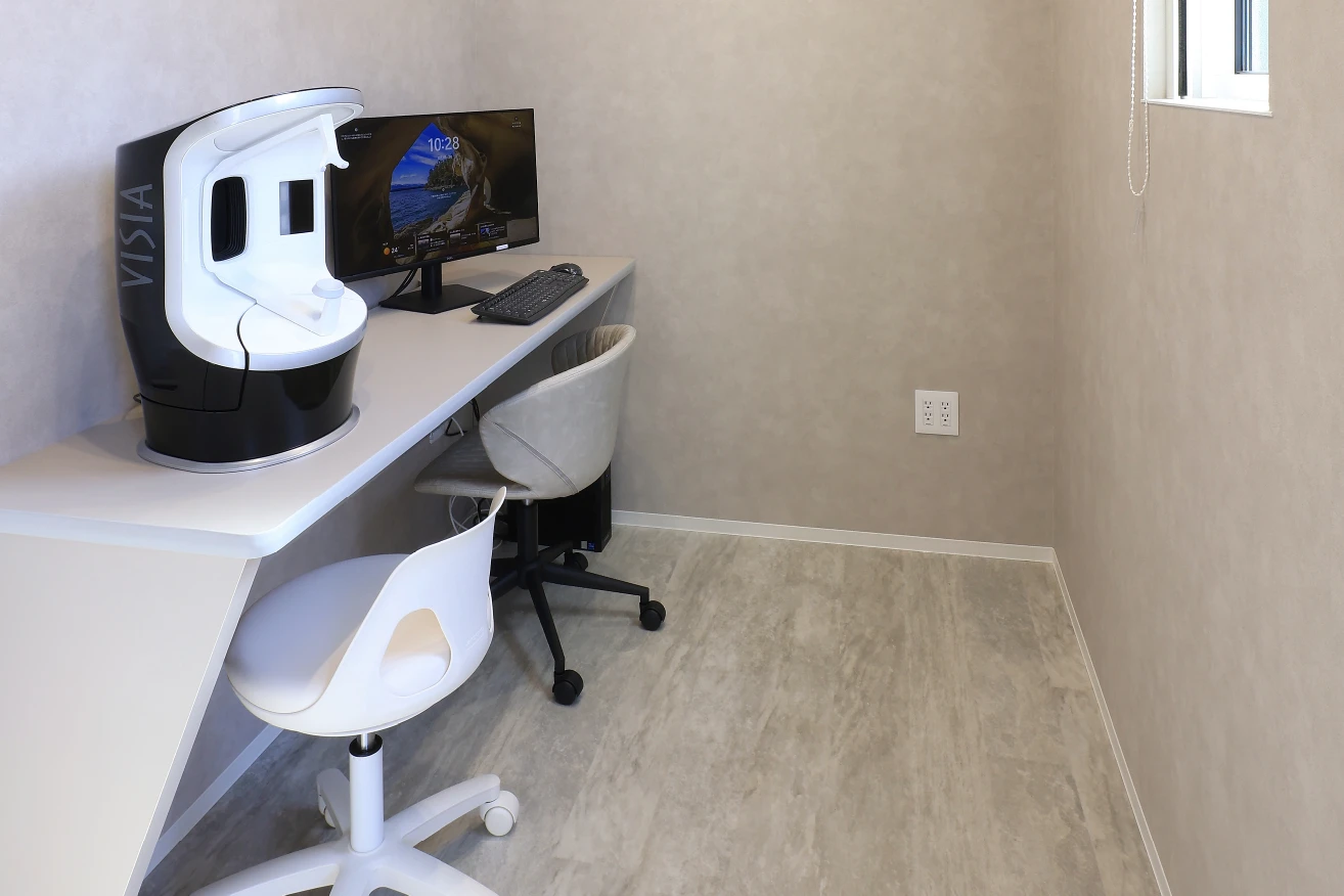 シミ・シワ・毛穴・赤みなどを高精度に分析できる肌診断システムです。カラー写真とUV写真の両方を撮影できます。現在の肌状態だけでなく、将来のリスクも可視化できるため、根拠のあるスキンケアや治療のご提案が可能です。