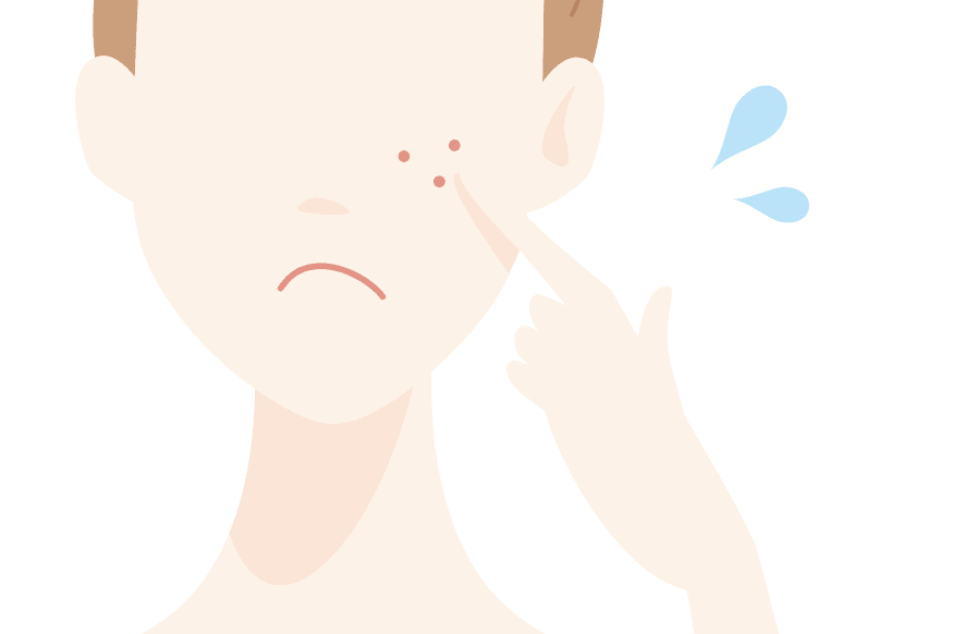 にきび(尋常性ざ瘡)は、思春期だけでなく大人にも多くみられる皮ふの病気です。皮脂の分泌や毛穴のつまり、アクネ菌の増殖など、さまざまな原因が複雑に関係しています。放っておくと炎症が悪化し、赤みや色素沈着、クレーターのような痕が残ることもあります。